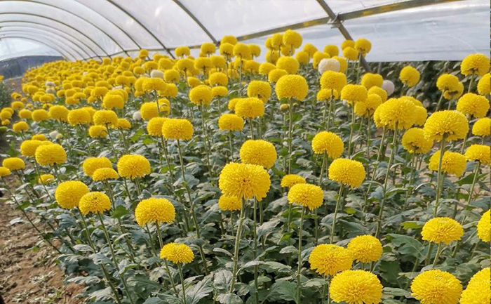 开封花不同园艺经营的乒乓菊种植基地总面积15亩,在4-8月份销售乒乓菊菊花种苗,年生产量达到了60万柱;在9-11月销售乒乓菊切花,盆栽乒乓菊,年供应量达到了15万盆。我们种植的乒乓菊分为两类,地栽乒乓菊切花,此类主要供应给需要做插花艺术的花店等客户,切花花期可以达到25天。还有就是盆栽乒乓菊,规格不等,主要用来组摆和菊花展使用。如果您有相关需求请联系我们。
